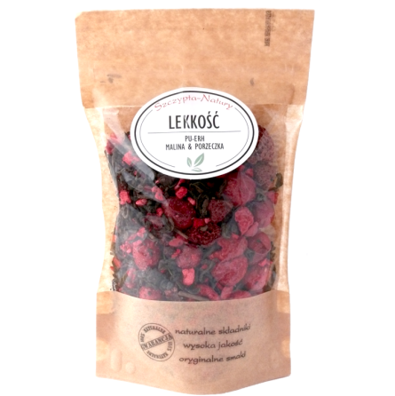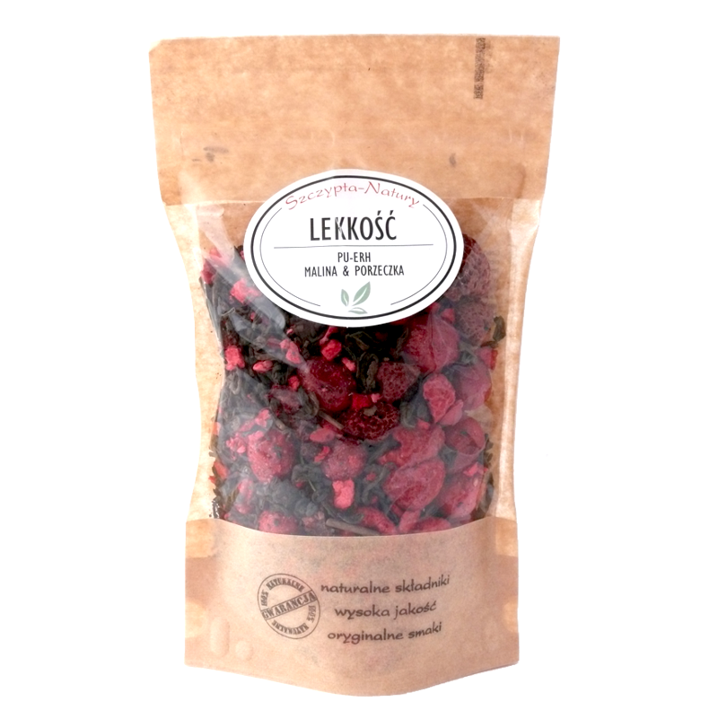 Herbata czerwona Pu-Erh, Żurawina liofilizowana, Malina liofilizowana 7%, Malina suszona 7%, Porzeczka czerwona suszona 7%, Naturalny aromat
