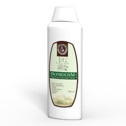 Sposób użycia: Wstrząsnąć przed użyciem. Nanieść preparat na chorą skórę (na twarz wystarcza jedna łyżka stołowa) i przez ok. 2-3 min. delikatnie wcierać, a następnie zmyć wodą. Stosować 1-3 x dziennie w zależności od nasilenia objawów chorobowych. W przypadku łupieżu łojotokowego stosować Boniderm zamiast szamponu.