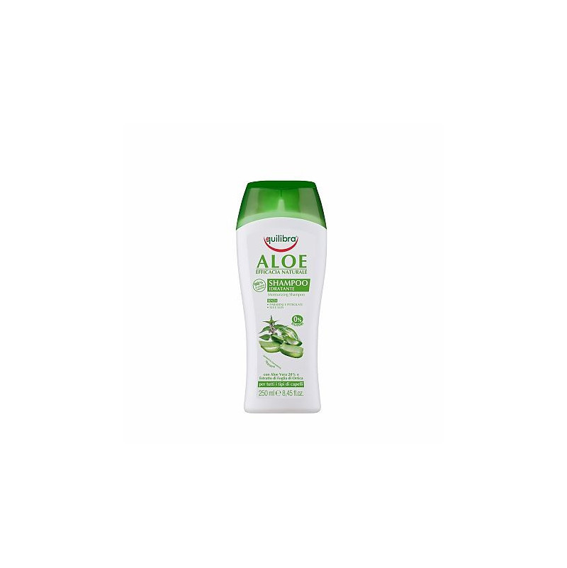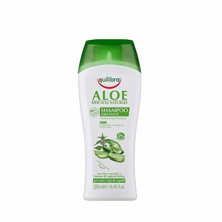 Nawilżający szampon aloesowy łagodnie oczyszcza włosy i skórę głowy oraz przywraca jej równowagę. Nie podrażnia i nie wysusza. Odpowiednio wyselekcjonowane ekstrakty roślinne nawilżają, wzmacniają i chronią włosy, które stają się lśniące, miękkie i odżywione. Szampon odznacza się wysoką zawartością aloesu (20%), który jest bogaty w polisacharydy. Aloes dba o właściwe nawilżenie i ochronę włosów i skóry głowy. Formułę szamponu wzbogacono o wyciąg z liści pokrzywy, który wspiera wzrost zdrowych włosów. W szamponie obecne są także proteiny pszeniczne, roślinne surfaktanty, ekstrakt z siemienia lnianego oraz gliceryna pochodzenia roślinnego. Produkt doskonały do stosowania przez całą rodzinę. Nadaje się do każdego rodzaju włosów.
