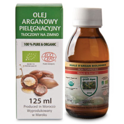 100% ekologiczny, czysty olej arganowy z Maroka, tłoczony na zimno z certyfikatem jakości biologicznej Ecocert.