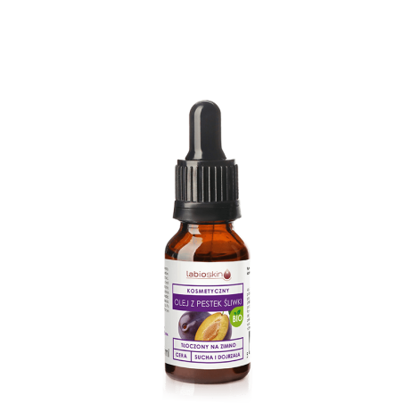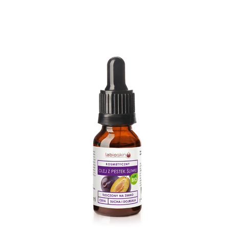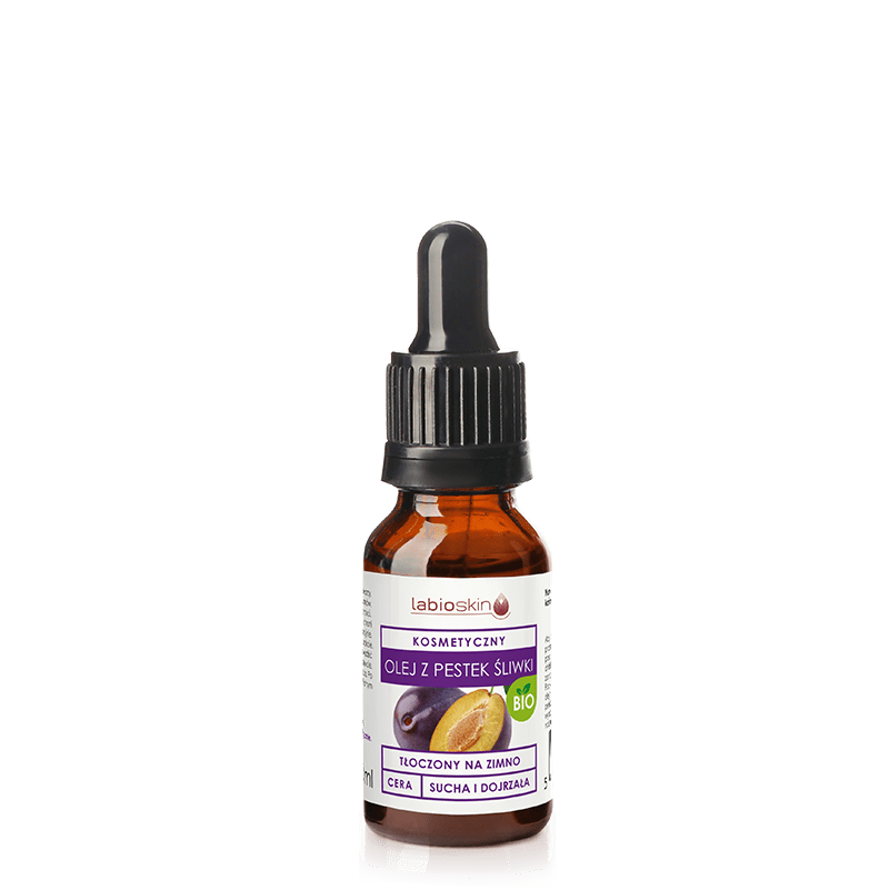 Naturalny, nierafinowany olej z pestek śliwki ma ciemnożółtawą barwę. Charakteryzuję się bardzo przyjemnym marcepanowym zapachem. Jest bogatym źródłem witaminy E, witamin z grupy B, beta-karotenu oraz nienasyconych kwasów tłuszczowych. Dzięki wysokiej zawartości kwasu oleinowego olej ten reguluje pracę gruczołów łojowych i odblokowuje pory. NNKT zwiększają zdolności regeneracyjne skóry oraz poziom jej nawilżenia. Dzięki witaminie E i antyoksydantom spowolnione są procesy starzenia, a skóra staję się promienna i odżywiona. Olej ten szybko się wchłania, pozostawiając ochronny film.