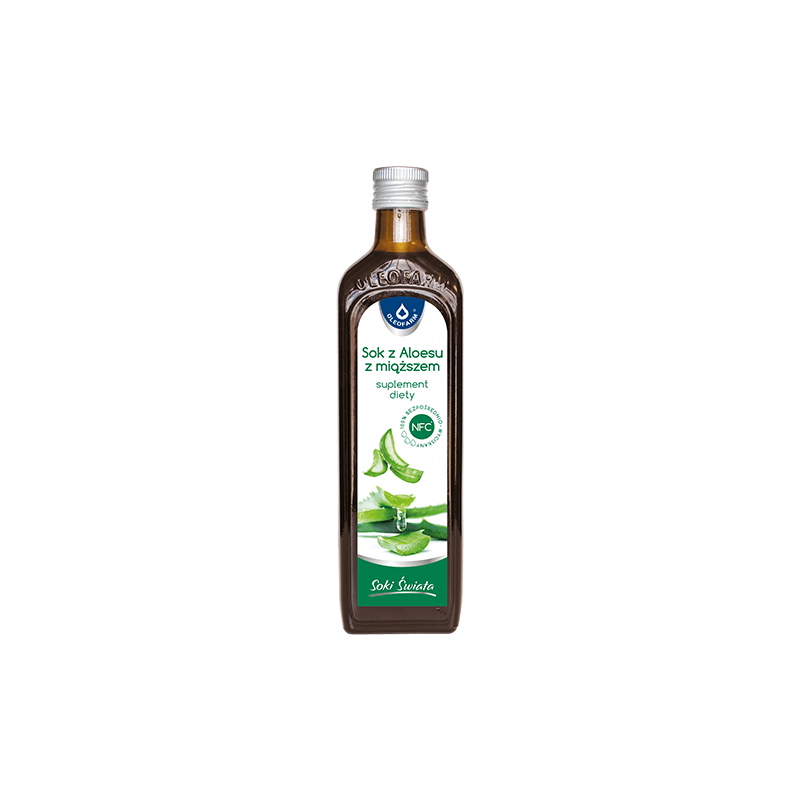 Sok z aloesu otrzymywany jest bezpośrednio z miąższu liści aloesu. W odróżnieniu od soków odtwarzanych z koncentratu, charakteryzuje się wyrazistym smakiem i zapachem. Aloes zwyczajny wspomaga odporność oraz korzystnie wpływa na przemianę materii i procesy trawienne.