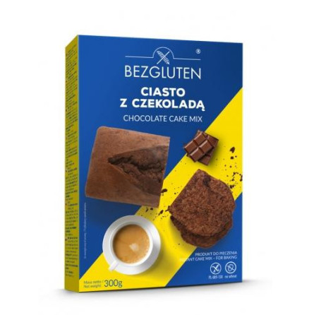 Ciasto w proszku: skrobia kukurydziana, kakao, skrobia ryżowa, inulina, substancje spulchniające: węglany sodu, difosforany, skrobia ziemniaczana, aromat. Dropsy czekoladowe (10%): cukier, miazga kakaowa, tłuszcz kakaowe, kakao o obniżonej zawartości tłuszczu, emulgatory: lecytyny (zawiera soje), aromat waniliowy.