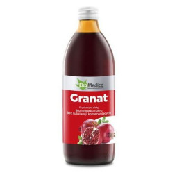 Granat - suplement diety w formie płynnej, wyprodukowany z soku 100% z owoców granatu z dodatkiem naturalnej witaminy C pochodzącej z ekstraktu z owoców camu-camu. Pasteryzowany.