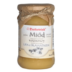Miód lipowo-bławatkowy jest miodem wielokwiatowym pozyskiwanym w okresie kwitnienia lipy i bławatka. Ma delikatny smak, ciekawy zapach lipy i wyjątkową, kremową konsystencję, która czyni go jednym z najczęściej wybieranych miodów z Pasieki Dutkowiak. Oprócz unikalnych właściwości organoleptycznych zaletą miodu lipowo-bławatkowego jest jego silne działanie antybiotyczne, dzięki czemu znajduje on zastosowanie w leczeniu przeziębień, stanów zapalnych górnych i dolnych dróg oddechowych. Dodatkowo odżywia organizm, wzmacnia odporność, tonizuje układ nerwowy.