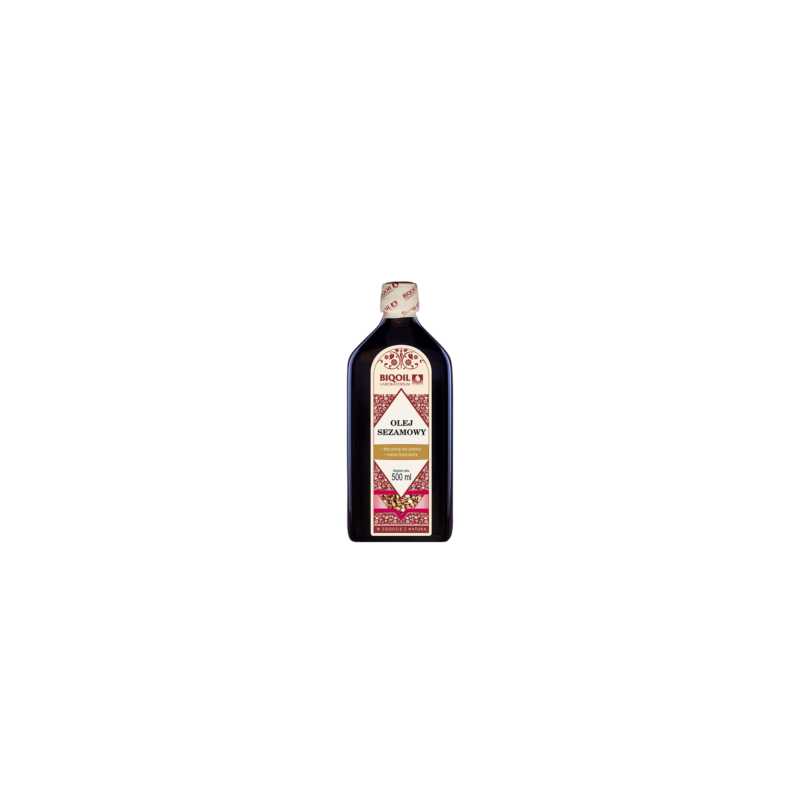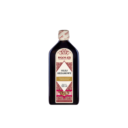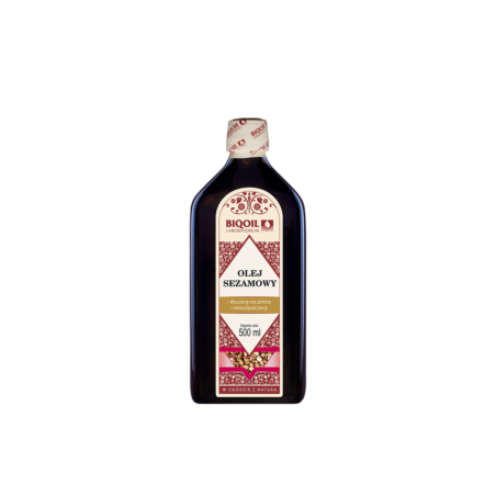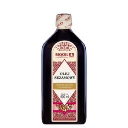 Olej sezamowy Laboratorium Biooil to w 100% naturalny, tłoczony na zimno, nieoczyszczony i nierafinowany olej z nasion sezamu. Cechuje się jasną klarowną barwą, pięknym zapachem i smakiem sezamu oraz słodkawym aromatem. Dzięki temu, że wytłoczono go na zimno, zachował wszystkie cenne właściwości nasion sezamu. Olej sezamowy należy do grupy najstarszych olejów świata – używano go stulecia temu, głównie w kuchniach dalekowschodnich. Dzisiaj króluje w kuchni chińskiej i arabskiej, nadając potrawom jeszcze bardziej orientalnego charakteru. Z uwagi na swój słodkawy posmak, olej sezamowy jest ciekawym dodatkiem do wielu potraw – znajdzie zastosowanie zarówno w potrawach wytrawnych, jak i w propozycjach deserowych. Ważne jednak, by nie używać go do smażenia – olej sezamowy tłoczony na zimno nie nadaje się do smażenia – pod wpływem temperatury wszystkie cenne właściwości oleju sezamowego są niszczone.