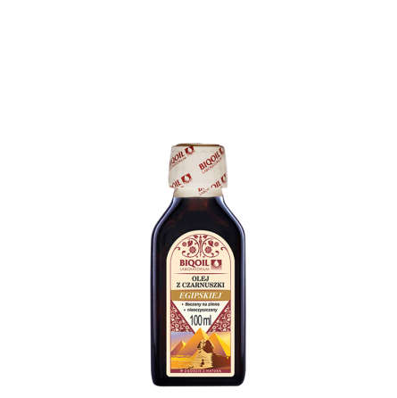 Olej z czarnuszki to bardzo charakterystyczny tłuszcz pochodzenia roślinnego – ma interesujący smak i aromat. Jest nieco ziołowy, z drugiej strony korzenny. Z pewnością intensywny i ciekawy. Olej czarnuszkowy Laboratorium Biooil tłoczony jest z czarnuszki siewnej – w tym przypadku z surowca pochodzącego z Egiptu. Oleju z czarnuszki, zwanego także czarnym złotem lub złotem Faraonów, można używać zarówno w kuchni, jak i do celów kosmetycznych. Dzięki temu, że olej z czarnuszki w Laboratorium Biooil tłoczony jest na zimno, zachowuje pełnię właściwości nasion, z których go wytłoczono. Warto jednak pamiętać, że olejów tłoczonych na zimno (z pojedynczymi wyjątkami) powinniśmy używać wyłącznie na zimno – smażenie, gotowanie, pieczenie z użyciem takich olejów nie jest wskazane – pod wpływem wysokiej temperatury tracą one swoje cenne właściwości.
