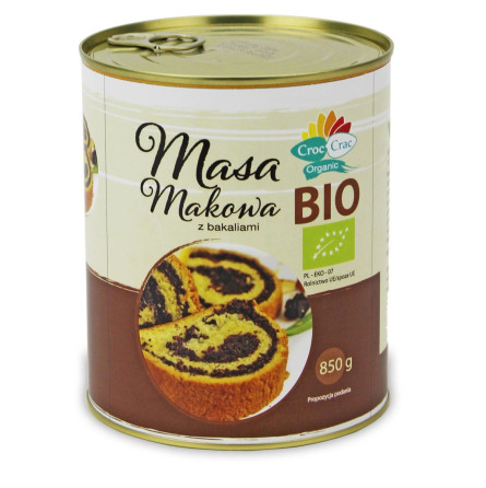 woda, mak* 23 %, cukier*, bakalie* 12 % [rodzynki* 42 %, skórka z pomarańczy* 32 % (skórka z pomarańczy* 80 %, syrop kukurydziany*, sól), skórka z cytryny* 26 % (skórka z cytryny* 80 %, syrop glukozowy*)], miód*, płatki owsiane*, aromat migdałowy naturalny (* certyfikowany składnik ekologiczny)