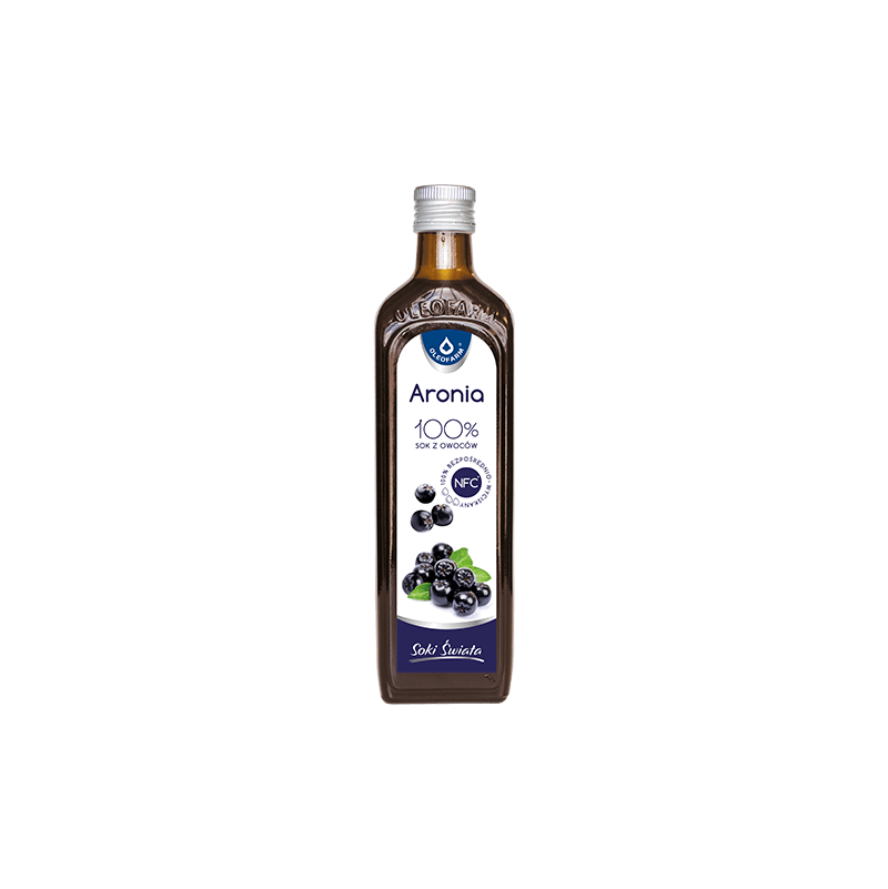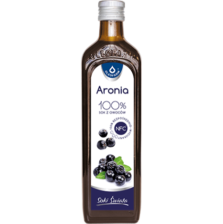 Aronia (Aronia melanocarpa) jest krzewem należącym do rodziny różowatych, uprawianym dla aromatycznych, ciemnogranatowych owoców. Sok wyciskany bezpośrednio z owoców aronii charakteryzuje się kwaśnym, lekko cierpkim smakiem. Stanowi doskonałe uzupełnienie codziennej, zbilansowanej diety. Może być spożywany przez osoby w każdym wieku. Polecany jest szczególnie w okresie jesienno-zimowym i w okresie przesilenia wiosennego.