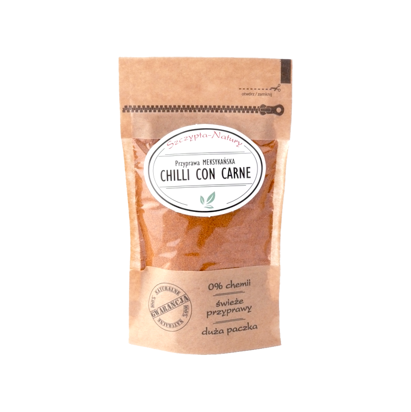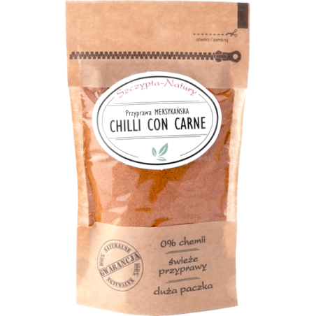 Meksykańskiej chilli con carne to tradycyjna potrawa kuchni meksykańskiej i teksańskiej. Mieszanka przyprawowa zawiera tak dobrane składniki, by nadać potrawie smak prawdziwie amerykański. Szczególną rolę odgrywa aromatyczny kmin rzymski i pieprz.