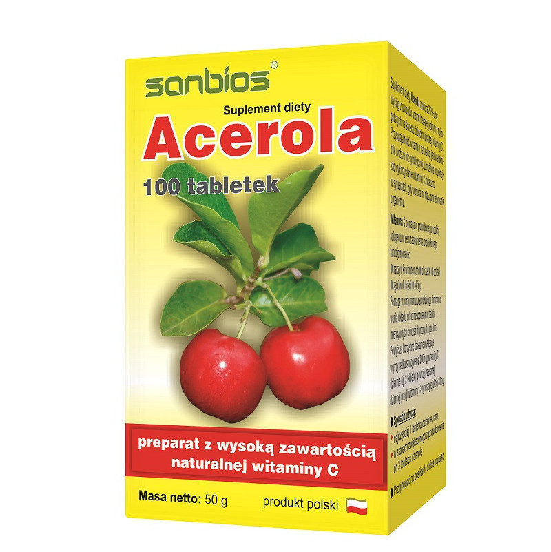 wyciąg z owoców aceroli (Malpighia glabra): 495,5mg w tym 125 mg naturalnej witaminy C