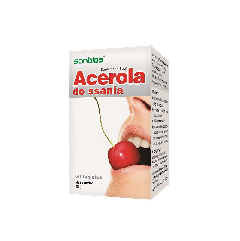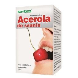 Suplement diety Acerola do ssania zawiera wyciągi z owoców aceroli i żurawiny.