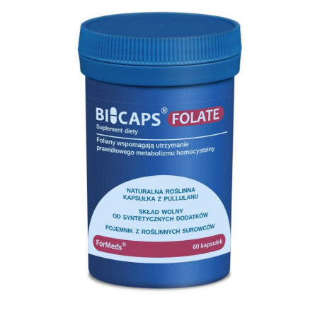 Suplement diety BICAPS® FOLATE zawiera 500 μg folianu (L-metylofolian) oraz 290 mg inuliny w 1 kapsułce bez żadnych dodatków.