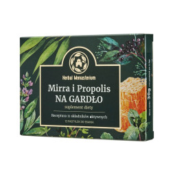 Mirra i Propolis na gardło to preparat ze starannie dobranych składników ziołowych, przynoszący ulgę w chrypce i nieżycia gardła. Preparat łączy w sobie działanie licznych ziół, stosowanych tradycyjnie w fitoterapii a przebadanych pod kątem prozdrowotnych właściwości substancji aktywnych. Tabletki na gardło nie zawierają konserwantów, sztucznych substancji słodzących i barwników.