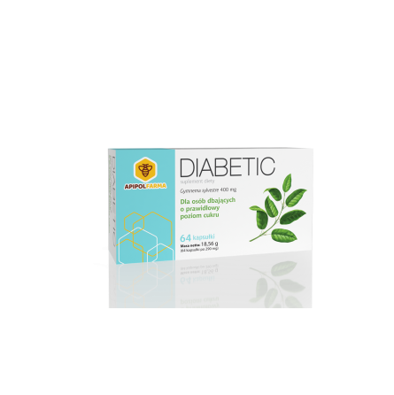 Diabetic to suplement diety przeznaczony dla osób z zaburzeniami metabolizmu węglowodanów, z podwyższonym poziomem cukru oraz zagrożonych cukrzycą. Zawiera wyciąg z Gymnema sylvestre będący źródłem kwasów gymnemowych. Gymnema działa korzystnie na komórki trzustki, sprzyja prawidłowemu wydzielaniu insuliny. Może zmniejszyć wchłanianie glukozy z przewodu pokarmowego oraz wspomaga utrzymanie prawidłowego poziomu cukru we krwi. Pomaga kontrolować masę ciała poprzez zmniejszenie apetytu. Pomaga również kontrolować apetyt na słodycze.