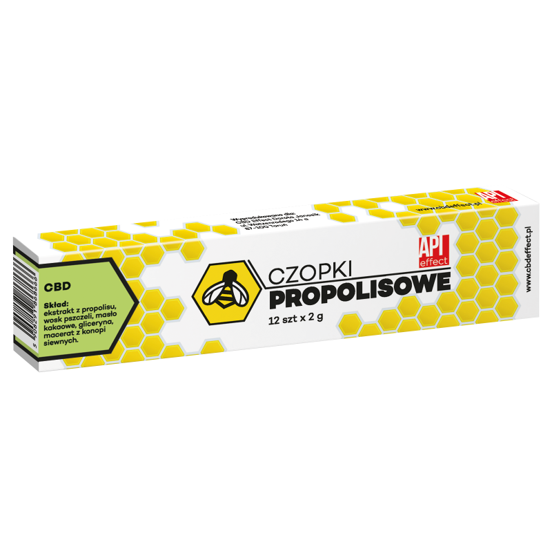 Kanabidiol z kwiatów konopi siewnej w połączeniu z propolisem wykazuje działanie przeciwbólowe, przeciwzapalne, regeneracyjne.
