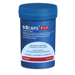 Suplement diety BICAPS® P-5-P zawiera 25 mg witaminy B6 (P-5-P) oraz 280 mg inuliny w 1 kapsułce bez żadnych dodatków. Produkt odpowiedni dla wegetarian i wegan.