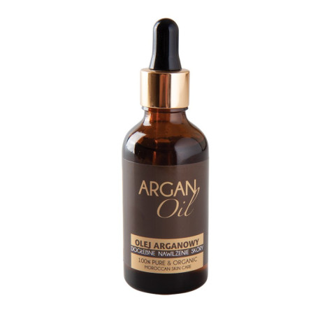 Olej arganowy zalecany jest w walce ze zmarszczkami, przedwczesnym starzeniem się skóry, doskonały dla dojrzałej cery. Pomaga zredukować powstałe już zmarszczki poprzez odbudowę warstwy hydrolipidowej skóry, a tym samym zachować młodzieńczy i zdrowy wygląd. Dzięki naturalnym antyoksydantom chroni organizm przed niekorzystnym działaniem wolnych rodników. Wzmacnia włosy i paznokcie oraz ma właściwości nawilżające - dogłębnie ujędrnia i napina skórę, REDUKUJE CELLULIT I ROZSTĘPY! Olej arganowy chroni przed działaniem szkodliwych dla cery czynników zewnętrznych, takich jak: słońce, wiatr, zimno. Posiada właściwości naprawcze, regenerujące i odżywcze