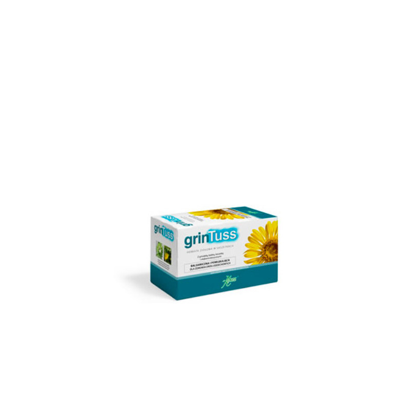 Działanie herbaty ziołowej GrinTuss jest uzupełniane olejkami eterycznymi z mięty i eukaliptusa, które dzięki zaparzeniu w gorącej wodzie, wyzwalają ciepłe opary balsamiczne.